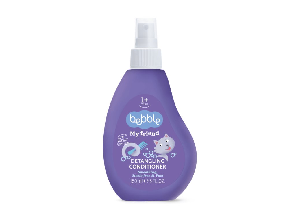 Pokud má vaše dítě vlasy, které se snadno zacuchávají, pravděpodobně znáte ty slzy a záchvaty vzteku, které souvisí s jejich česáním. A samozřejmě víme, že na světě jsou důležitější věci než dokonalý účes, zvláště pro malé děti. Také však věříme, že delší vlasy lze snadno udržovat bez utrpení a bolesti as tím vám pomůže detanglingový kondicionér ve spreji Bebble. Vyživuje a zjemňuje vlasy a usnadňuje jejich rozčesávání. Snižuje statiku způsobenou česáním, udržuje vlasy volněji a pomáhá je tvarovat. Přípravek se může použít na suché i mokré vlasy. Speciální receptura tohoto šetrného kondicionéru obsahuje glycerin, který je znám tím, že zadržuje vlhkost ve svrchní vrstvě pokožky. Glycerin je vedlejším produktem při výrobě mýdla, je zcela neškodný pro tělo a má uklidňující účinek na pokožku. Stimuluje regeneraci pokožky a zanechává ji svěží, jemnou a hladkou. Obsahuje také D-panthenol, známý také jako provitamin B5, dodává pokožce jemný a hladký vzhled. Proniká do vnější vrstvy pokožky a udržuje přirozenou rovnováhu vlhkosti pokožky.