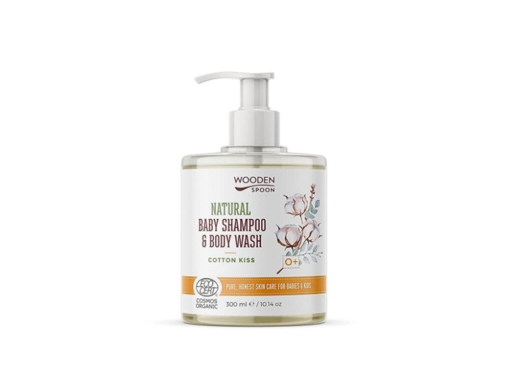 DĚTSKÝ SPRCHOVÝ GEL A ŠAMPON - BABY SHAMPOO AND BODY WASH - cotton kiss BIO 300 ml WOODENSPOON