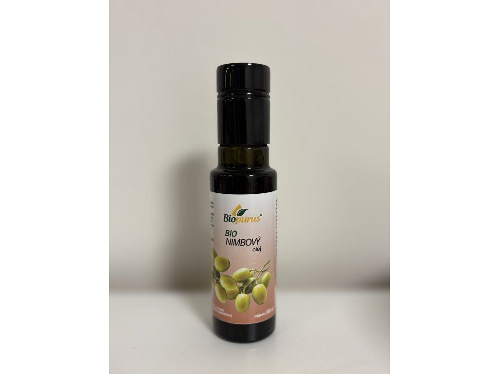 Nimbový olej - Neem olej je získaný z vysoce ceněného indického stromu Nimba, který má úžasné vlastnosti a je intenzivně používaný v ajurvédských a homeopatických preparátech, olej má mastnou olejovou konzistenci s těžkou oříškovo – česnekovou vůní. Je světle hnědé až tmavohnědé barvy. Vůně nimbového oleje je dost výrazná a ne příliš příjemná. Avšak, pokud poznáte jeho úžasné účinky, tak vám jeho vůně nebude překážet. Nimba je považována za univerzální kosmetický prostředek a je úžasná při čištění pleti a vlasů. Má antibakteriální, antimykotické a protivirové účinky, proto je velmi vhodná na ošetření vlasové pokožky a pokožky celého těla. Při máslové konzistenci je možné ho použít jako silný čisticí prostředek na pleť. Při pokojové teplotě se jeho konzistence mění na kapalnou, je možné ho použít jako čisticí pleťové tonikum. Pro aplikaci na vlasy jednoduše zahřejte a vmasírujte do vlasové pokožky.