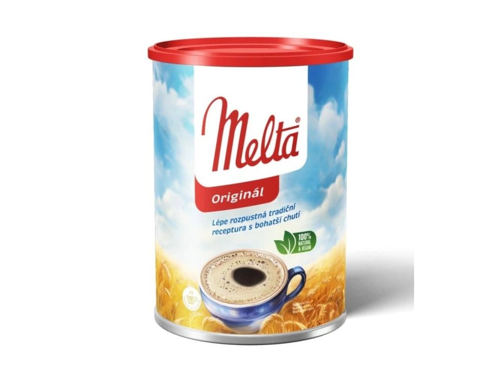 Mletý pražený cereální nápoj, neobsahuje kofein. Melta je směs kořene čekanky, žita a ječmene. Melta je tradiční kávovinová náhražka.