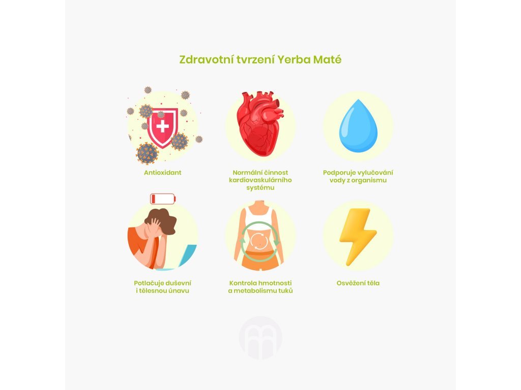 Yerba Maté je zdrojem polyfenolů (skupina antioxidačních látek, které pomáhají neutralizovat působení volných radikálů v našem těle. Yerba Maté je významný antioxidant. Obsahuje totiž polyfenoly quercetin a kyselinu chlorogenovou, které snižují oxidační stres a pomáhají předcházet autoimunitním poruchám.