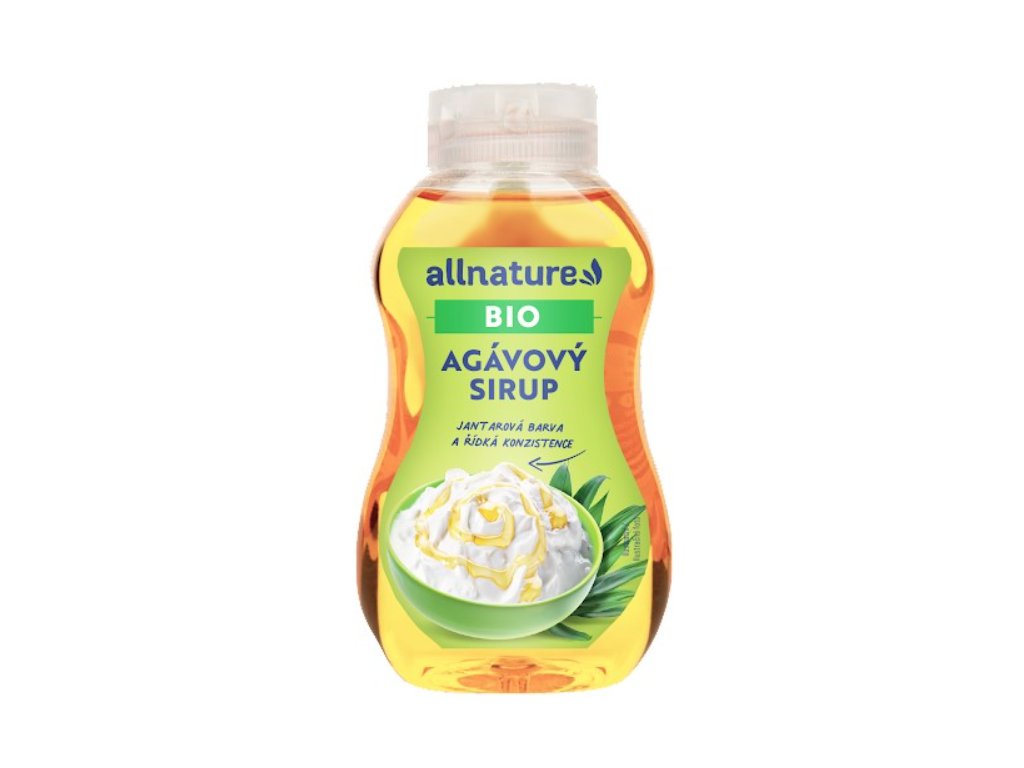 Allnature Agávový sirup v BIO kvalitě se zpracovává velmi zdlouhavým způsobem z prvotřídních rostlin agáve. Listy agáve se nejprve nařežou a následně se z nich sbírá každý den šťáva, ze které se speciální technologií při teplotách do 48 °C nechá odpařit voda. Vzniklý sirup má trochu řidší konzistenci než med, krásnou jantarovou barvu a díky jeho neocenitelným vlastnostem se mu říká “zlato mexických indiánů“. Agávový sirup značky Allnature má asi o 30 % větší sladivost než rafinovaný cukr, takže při slazení se ho spotřebuje malé množství. Jeho největším přínosem je, že obsahuje minimálně 66 % fruktózy a maximálně 25 % glukózy, takže nezatěžuje tělo nadměrným množstvím glukózy. Agávový sirup se těší velké oblibě u osob na redukční dietě a vzhledem k nízkému glykemickému indexu 30 je často vyhledáván i diabetiky. Sirup z agáve má lehounce karamelovou chuť, výborně se rozpouští a využijete ho v teplé i studené kuchyni.