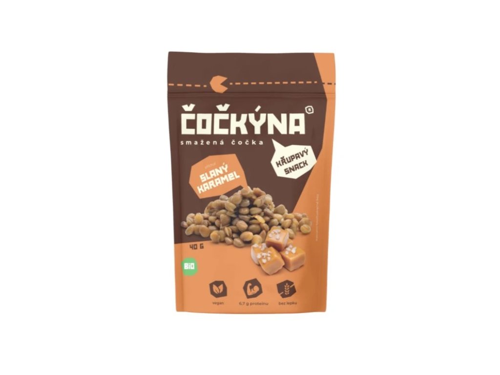 Čočkýna Smažená Čočka Bio slaný karamel představuje inovativní bio snack z pražené čočky s příchutí slaného karamelu. Tato křupavá pochoutka kombinuje jednoduchost složení s bohatou chutí a vysokým obsahem živin. Vyrobená pouze z čočky, kokosového oleje a koření nabízí autentický zážitek pro milovníky zdravých alternativ k tradičním snackům.