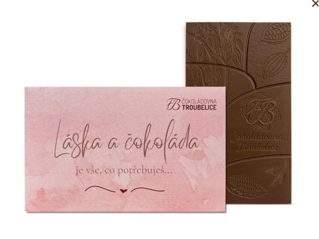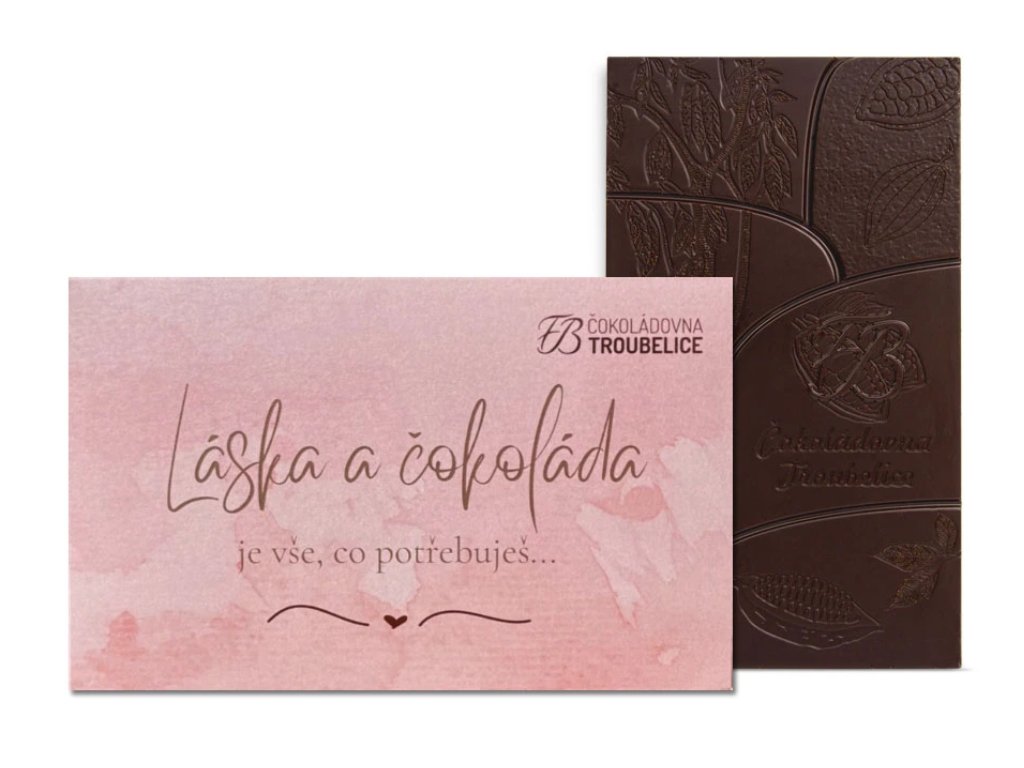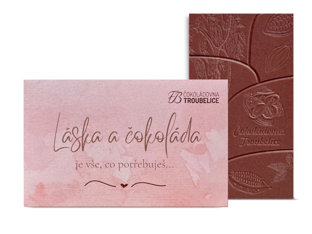 ČOKOLÁDA LÁSKA A ČOKOLÁDA 45 g - VARIANTY: mléčná 51%, hořká 75%, růžová ČOKOLÁDOVNA TROUBELICE