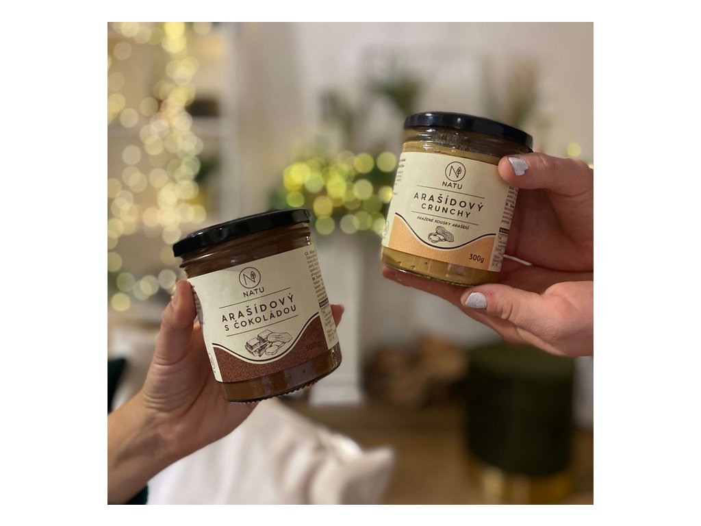 Darujte radost v podobě arašídových másel. Arašídové máslo crunchy a arašídové máslo s čokoládou.