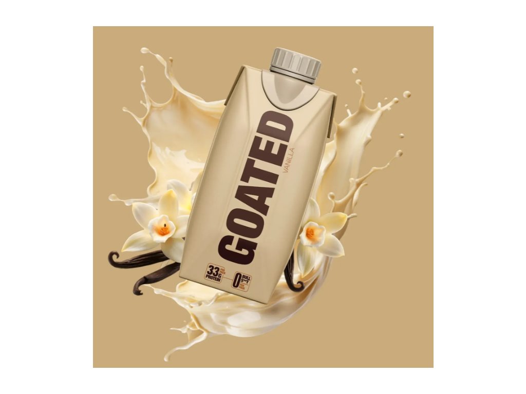 GOATED Protein Drink vanilka je ready-to-drink proteinový nápoj s vanilkovou příchutí, který nabízí 33 g kvalitních mléčných bílkovin v jedné lahvi – ideální pro doplnění proteinů po tréninku nebo kdykoliv během dne.