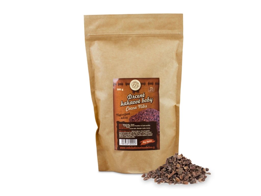 KAKAOVÉ BOBY DRCENÉ - NIBSY - VARIANTY: 500 g, 1 kg ČOKOLÁDOVNA TROUBELICE