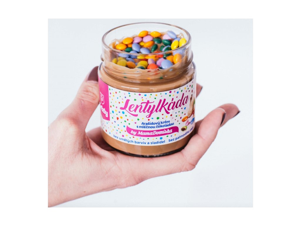 Lentylkáda – lžička štěstí v každém soustu! Krémově jemné arašídové máslo, dokonale sladěné s mléčnou čokoládou, je korunováno veselými křupavými lentilkami, které dodají každému ochutnání hravost a barvu. Tahle lahůdka potěší děti i dospělé, milovníky sladkého i všechny, kdo chtějí svůj den vylepšit malou dobrotou. Skvělá na palačinky, do kaší, na toast… nebo jen tak na lžičku. Pozor – vysoce návykové!