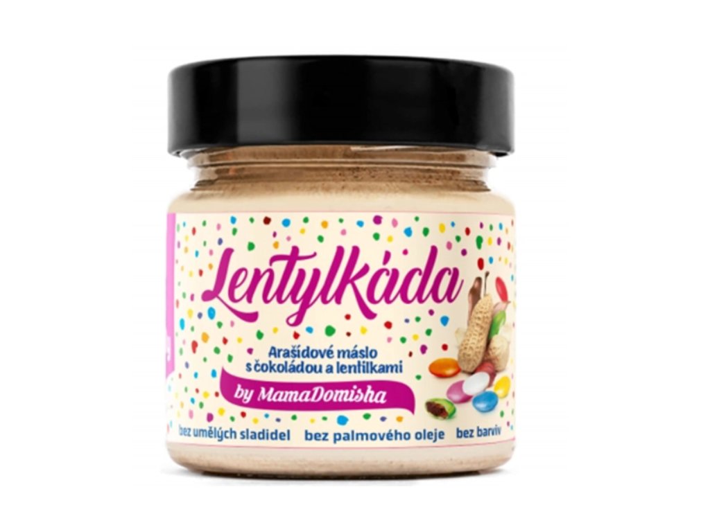 LENTYLKÁDA - arašídový krém s mléčnou čokoládou a lentilkami by @mamadomisha 250 g GRIZLY