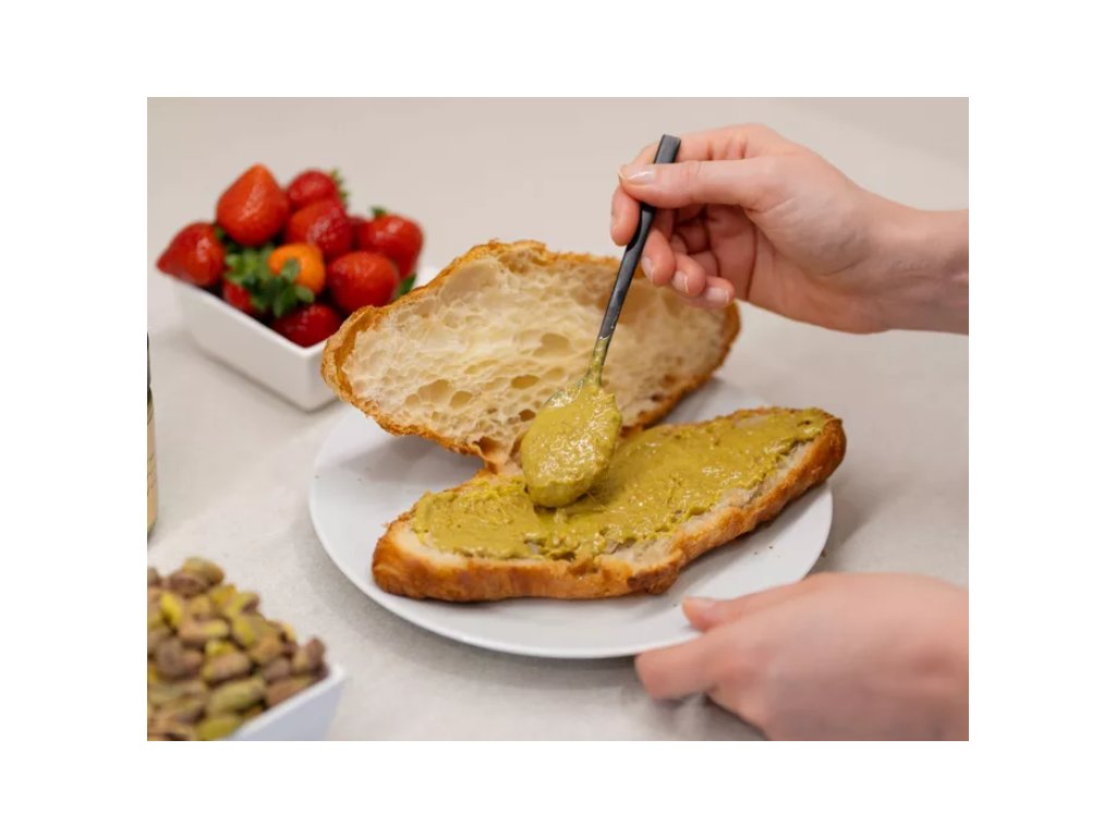 Křupavý krém inspirovaný slavným dubajským dezertem kombinuje jemný pistáciový základ s křupavými nitkami kataifi – tradičního středovýchodního těsta, připomínajícího tenké „vlasy“. Výsledkem je bohatá textura, sladká a lehce oříšková chuť a dokonalé spojení krémovosti s jemnou chrumkavostí. Skvěle se hodí na lžičku, do müsli, na pečivo nebo jako luxusní dezertní doplněk.