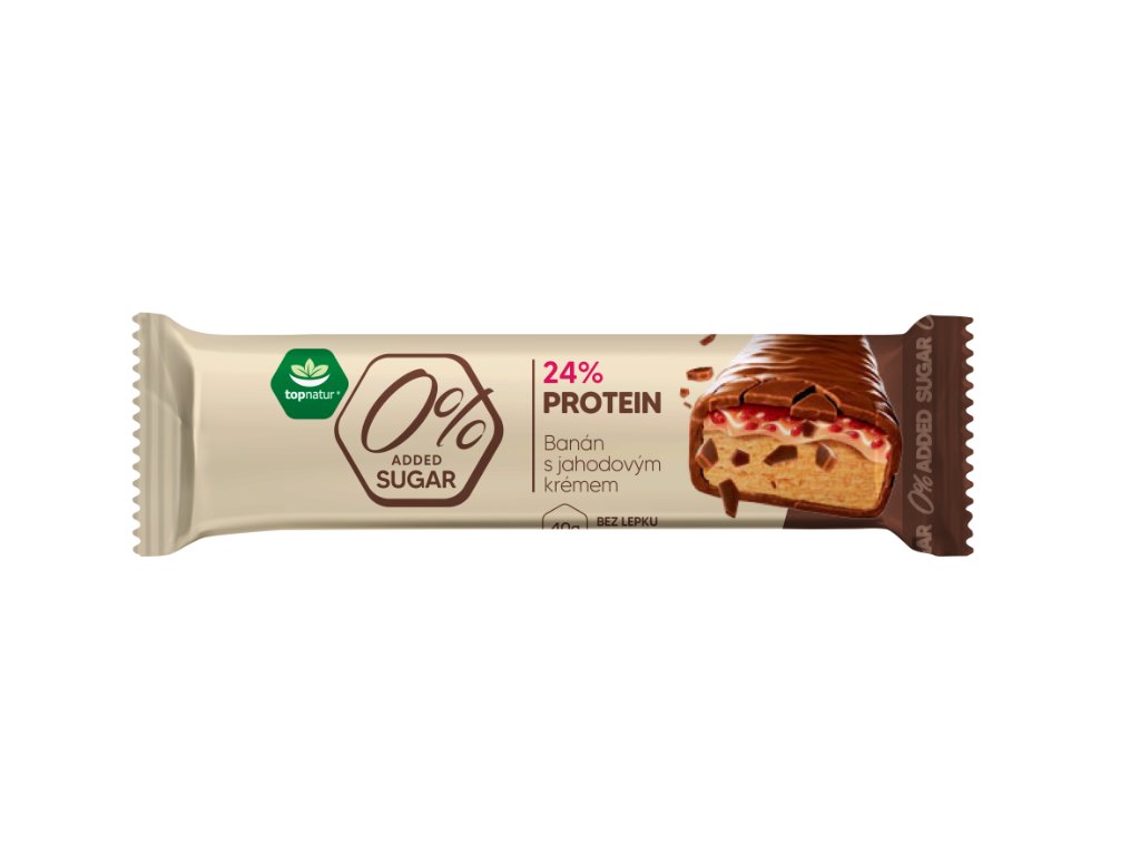 PROTEINOVÁ TYČINKA 0 % SUGAR - banán a jahodový krém 40 g TOPNATUR