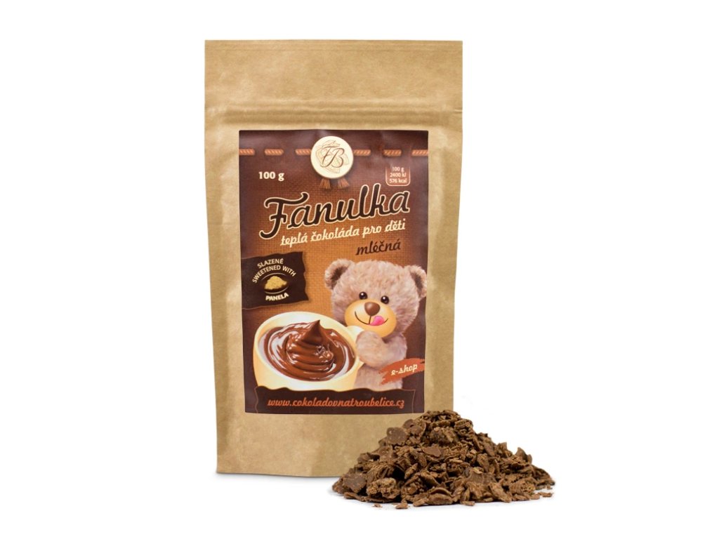 TEPLÁ ČOKOLÁDA MLÉČNÁ FANULKA PRO DĚTI - VARIANTY: 100 g, 200 g, 500 g ČOKOLÁDOVNA TROUBELICE
