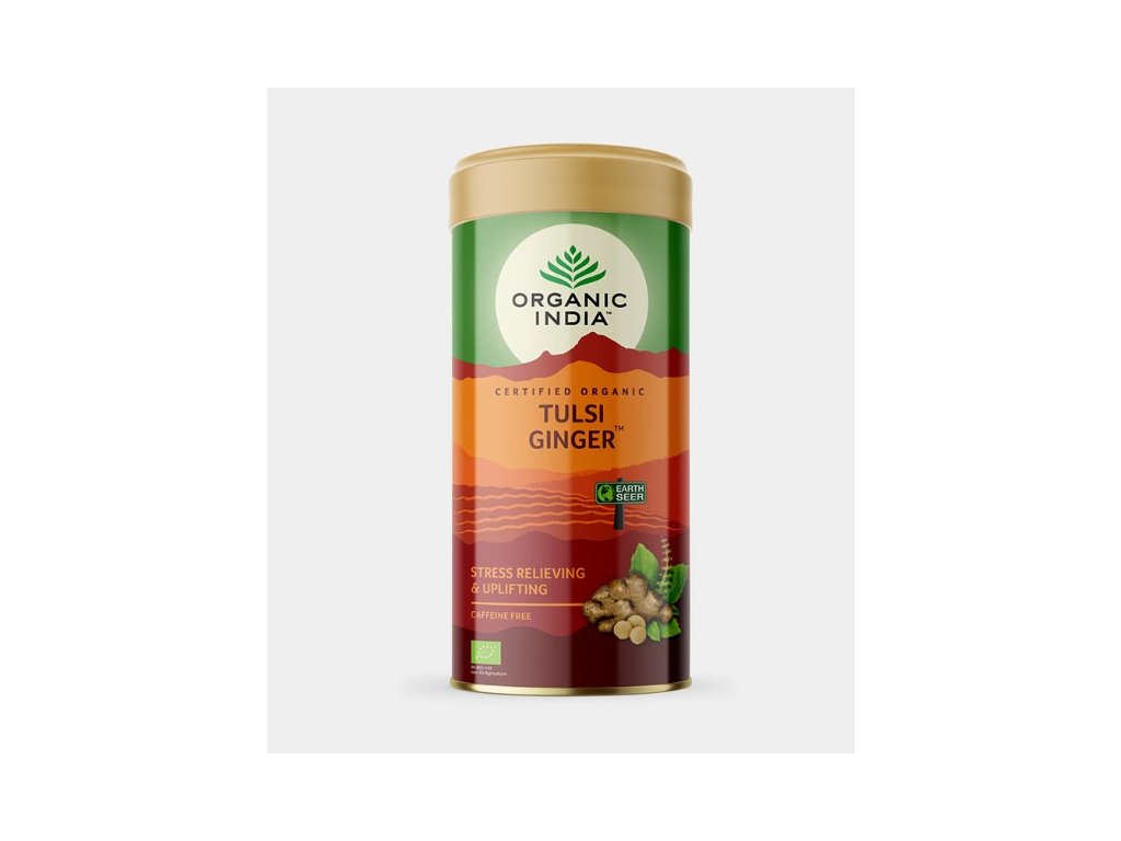 TULSI GINGER - zázvor - sypaný čaj v plechové dóze BIO 100 g ORGANIC INDIA