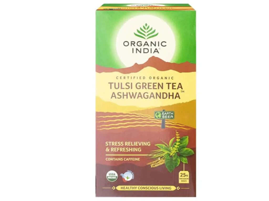 TULSI GREEN TEA ASHWAGANDHA - zelený čaj a ašvaganda - porcovaný čaj BIO 25 x 2 g ORGANIC INDIA