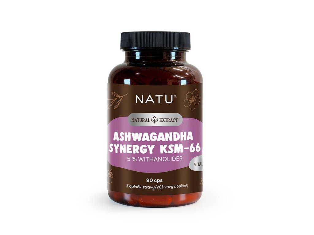 AŠVAGANDA - ASHWAGANDHA extrakt synergy KSM-66 (5% withanolidů) s piperinem 90 kaps. NATURAL EXTRACT - NATU