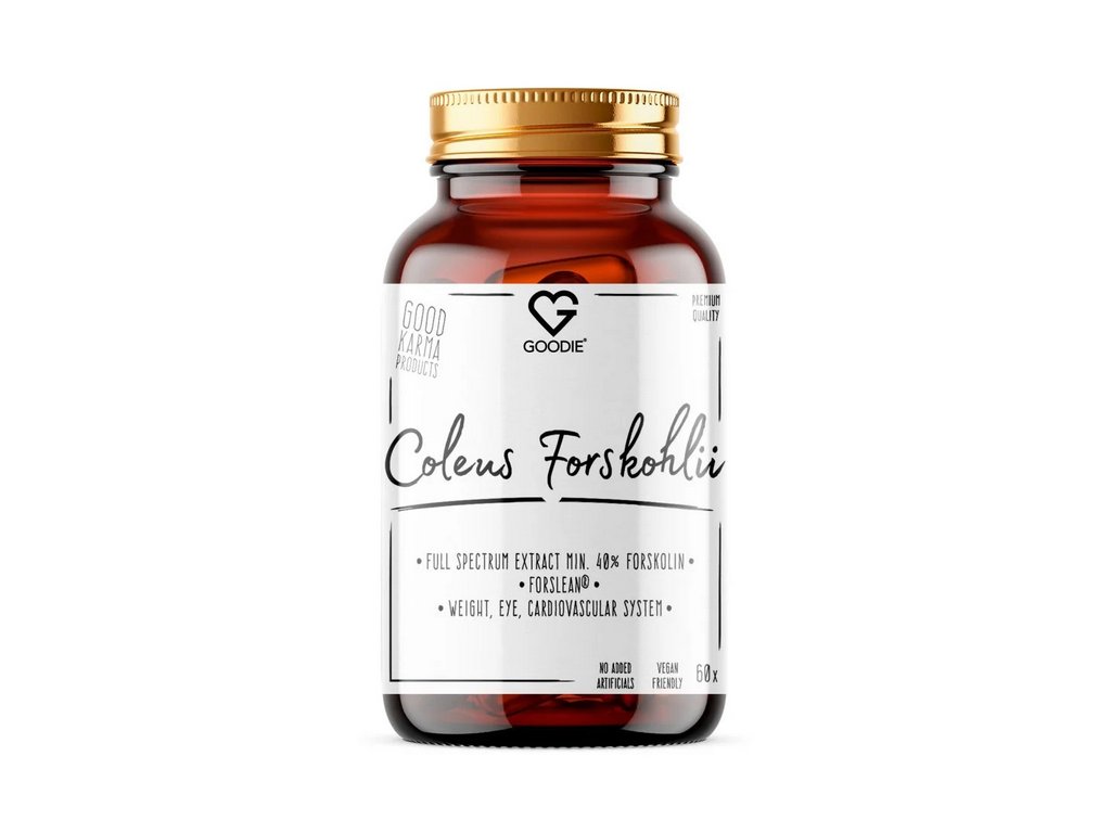 Coleus Forskohlii, resp. extrakt z jejího kořene, je pro své blahodárné účinky už po staletí využívána v tradiční medicíně. Goodie Coleus Forskohlii Forslean® je full spectrum extraktem, což znamená, že obsahuje veškeré cenné látky z této rostliny, které pozitivní vliv forskolinu na organismus podporují a ještě více zesilují. Standardizovaný obsah (v tomto případě min. 40 % forskolinu) zaručuje špičkovou kvalitu s přesně definovaným množstvím účinných látek. Důkazem unikátnosti a prokazatelných účinků tohoto extraktu jsou ocenění Nutracon Best Product Award v roce 2001 a Thomas Alva Edison Patent Award v roce 2004.