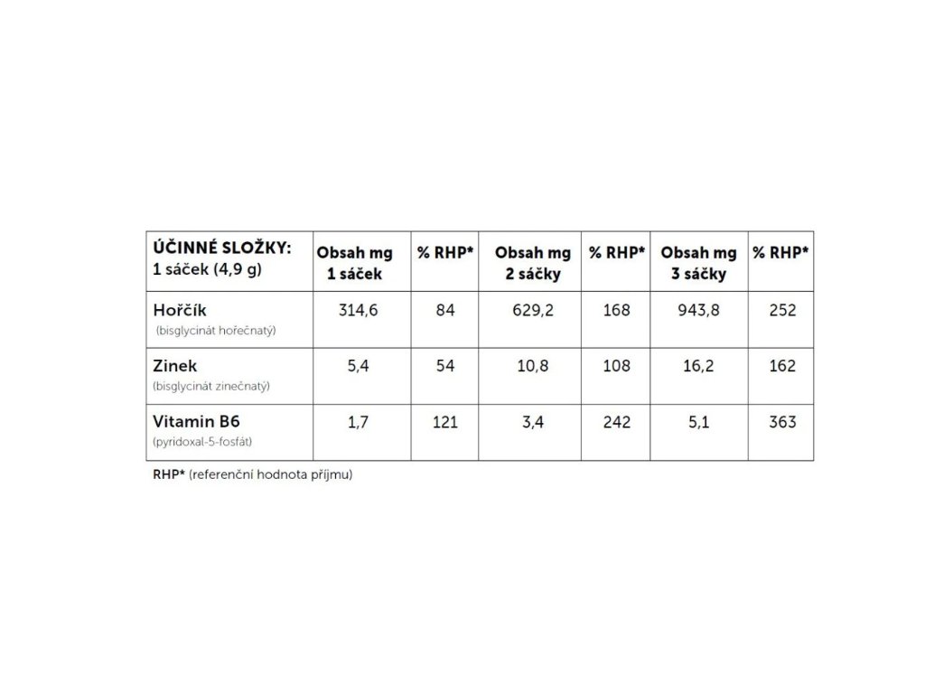 - až 314,6 mg hořčíku v jednou sáčku