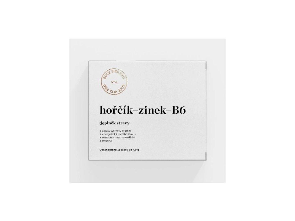 Inovovaná, velmi účinná směs minerálů hořčíku a zinku s vitaminem B6 ve vysoce vstřebatelných chelatovaných formách pro podporu zdravého nervového systému, energetického metabolismu, metabolismu makroživin a imunity. Obsahuje ještě více hořčíku v jednom balení a aktivní formu vitaminu B6. Receptura vznikla ve spolupráci společnosti Ecce Vita s dr. Davidem Frejem a Kateřinou Boesenberg, ND.