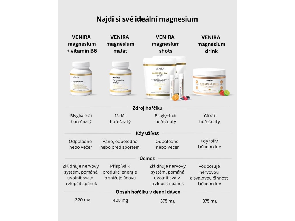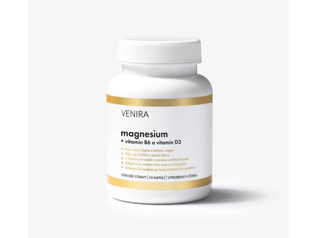 MAGNESIUM (hořčík) bisglycinát s vitaminem B6 a vitaminem D 90 kapslí VENIRA
