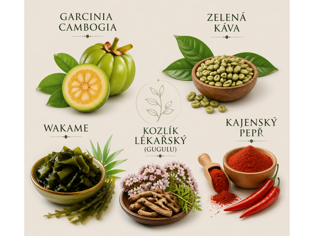 - Garcinia kambodžská – Extrakt z plodů s 60 % HCA
