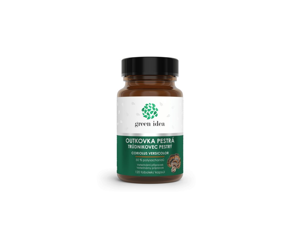 Složení: Outkovka pestrá (Coriolus versicolor) stand. extrakt z nadzemní části (50 % polysacharidů), vegetariánská kapsle