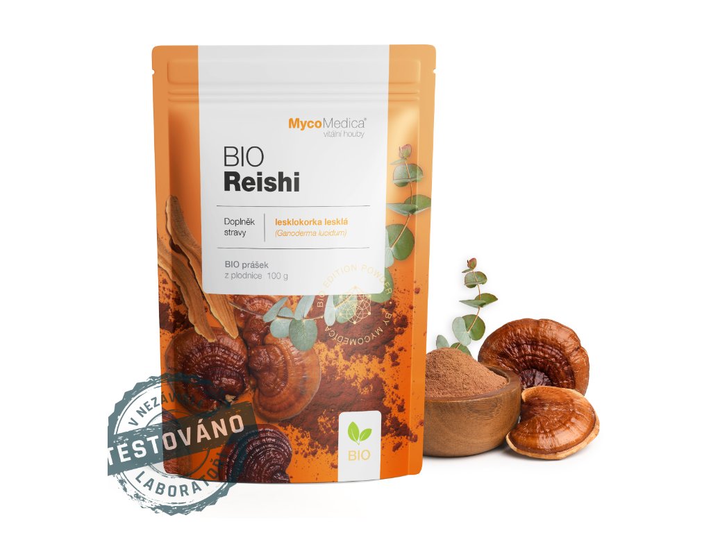 OBSAH: 100 g BIO prášku z plodnice Ganoderma lucidum (biomasa/powder)