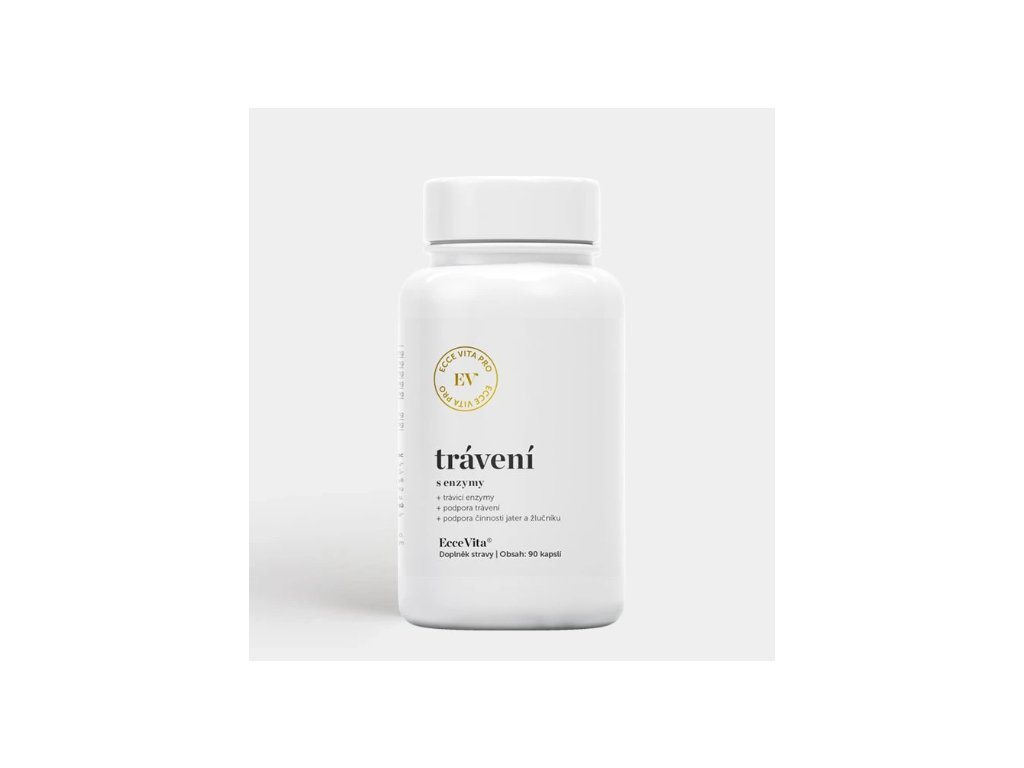 Trávení s enzymy obsahuje 90 kapslí z rostlinné celulózy ve kterých je směs standardizovaných extraktů 6 bylin spolu s komplexem 7 trávicích enzymů. Tato kombinace pomáhá přirozenému trávení, podporuje vstřebávání živin a snížení nadýmání.