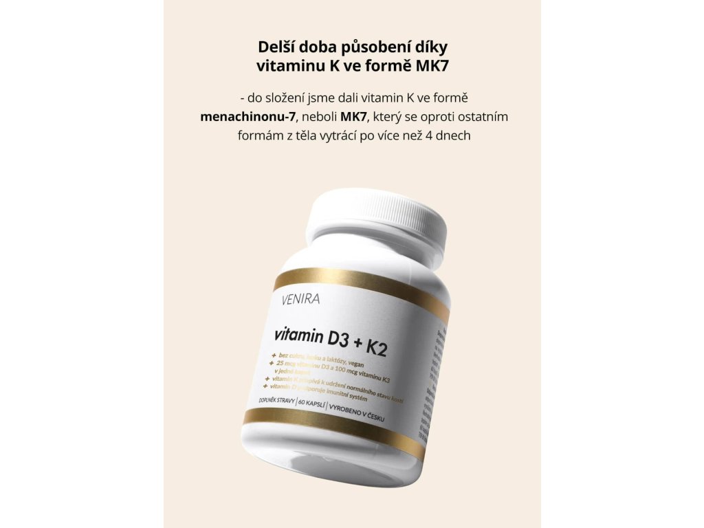 VITAMÍN D3 + K2 80 kapslí VENIRA
