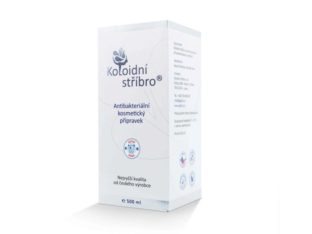 Koloidní stříbro je čisté metalické stříbro (Ag), suspenzované (rozložené a rozptýlené) v čištěné vodě (H2O) Aqua Purificata. Velikost částic je v řádu nanometrů.