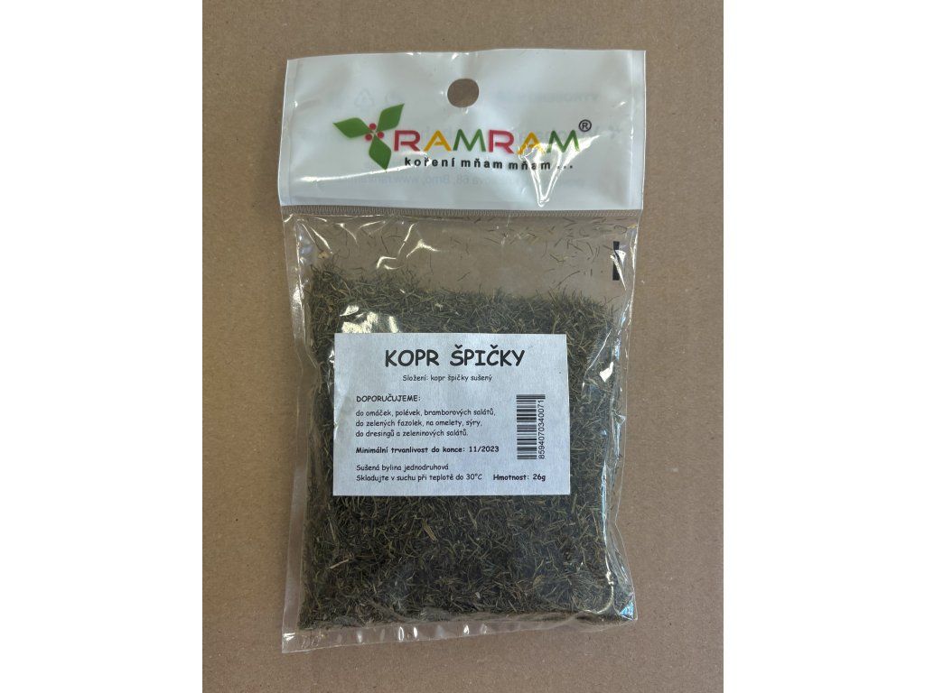 Jemné sušené koprové špičky 🌿 přinášejí typickou svěží vůni a lehce nasládlou chuť, která krásně zvýrazní širokou škálu pokrmů. Hodí se do omáček, polévek, bramborových salátů, dresinků i zeleninových jídel, kde dodají jemný bylinkový nádech. Výborně se kombinují také s omeletami, sýry nebo zelenými fazolkami, kterým dodají svěží a lehce aromatický charakter.