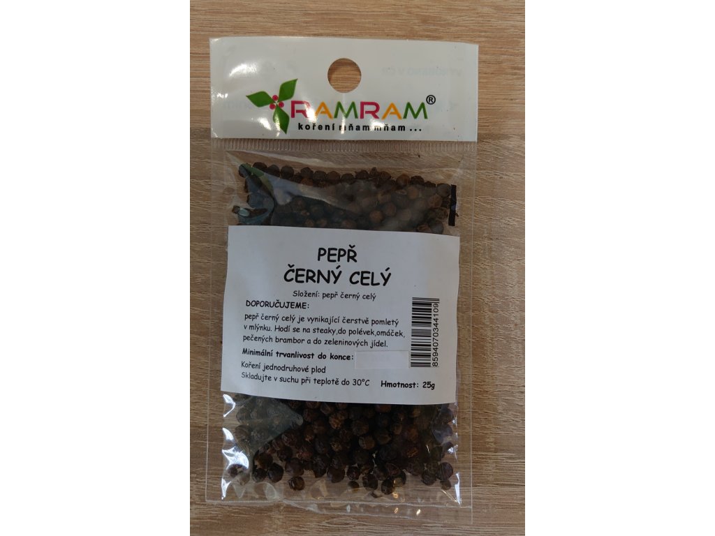 Pepř černý celý je vynikající čerstvě pomletý v mlýnku. Hodí se na steaky, do polévek, omáček, pečených brambor a do zeleninových jídel.