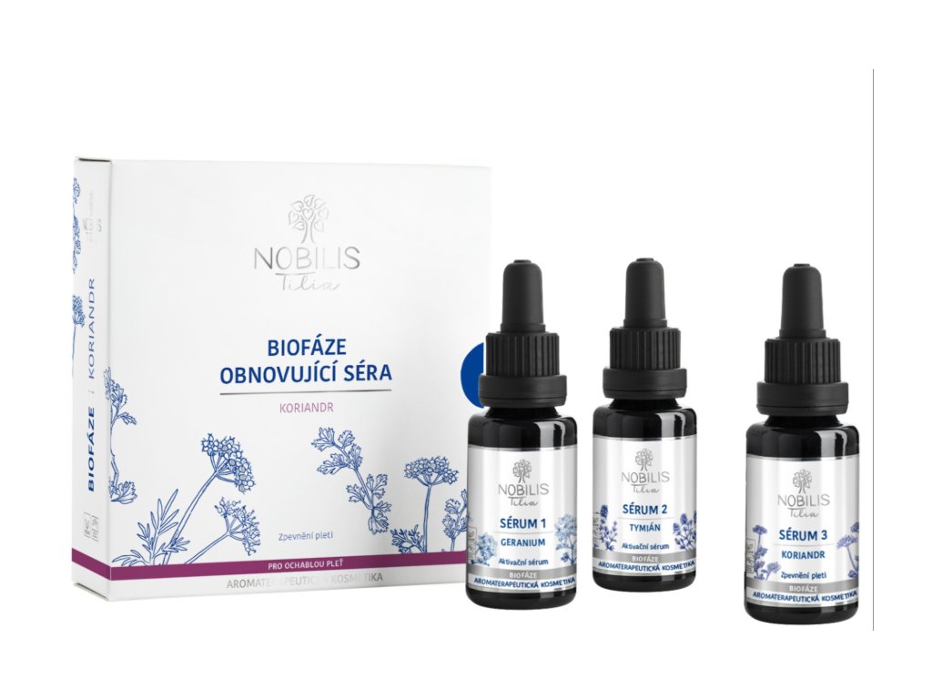 Sérum Koriandr 20 ml :(Aqua (demineralizovaná voda), Glycerin (hydratační látka), Sucrose Laurate (přírodní emulgátor), Glyceryl Caprylate (přírodní emulgátor na bázi rostlinného oleje a glycerinu), Sodium Caproyl/Lauroyl Lactylate (přírodní emulgátor), Juniperus Communis Fruit Oil (éterický olej z jalovce obecného), Rosmarinus Officinalis Oil (éterický olej z rozmarýnu lékařského), Myristica Fragrans Kernel Oil (éterický olej z muškátového oříšku), Origanum Majorana Oil (éterický olej z majoránky zahradní), Coriandrum Sativum Fruit Oil (éterický olej z koriandru setého), Xanthan Gum (přírodní polysacharid, zahušťovadlo), Potassium Sorbate (sorban draselný, konzervant pro certifikované přírodní a bio přípravky), Sodium Benzoate (benzoan sodný, konzervant pro certifikované přírodní a bio přípravky), Linalool*, Limonene*, Geraniol*, Eugenol*, Isoeugenol*.*-z přírodních éterických olejů.).