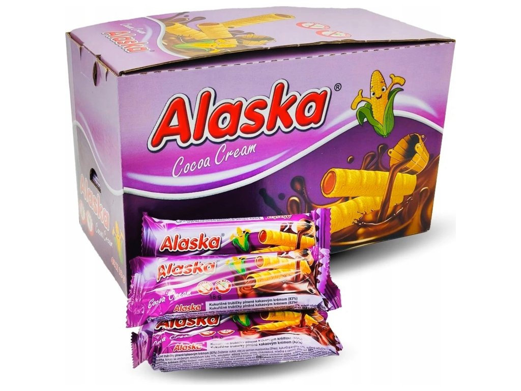 Kromě chutného kakaového krému nabízí Alaska také trubičky s příchutí kokosu, lískového oříšku a trubičky s mléčným krémem.