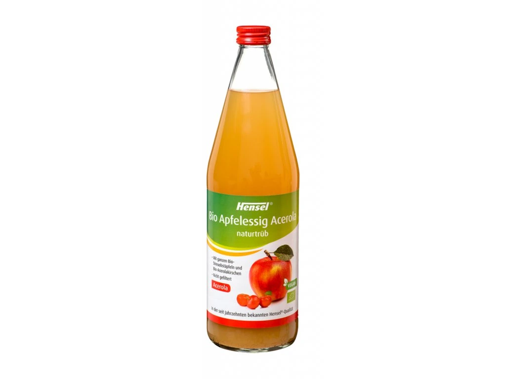 SCHOENENBERGER® Hensel® Ocet jablečný, přírodně kalný, s Acerolou je přírozeně kalný, nefiltrovaný jablečný ocet z organických sadů. Najde široké využití nejen v kuchyni na dochucování, konzervování případně marinováni jídel. Může také posloužit jako přísada do každodenního ranního nápoje, který posílí váš metabolismus a nastartuje vás před začátkem hektického dne.SCHOENENBERGER® Hensel® BIO Ocet jablečný, přírodně kalný, s Acerolou také poslouží jako přísada do horké lázně po náročném dni. ŠiroAcerola je exotický teplomilný keř plodicí oranžové až tmavě-červené plody podobající se evropské třešni. Jejich nakyslá ovocná chuť připomíná citron. Pochází z karibské oblasti a je známá i jako tropická či barbadoská třešeň. Obsahuje významné množství minerálů, zejména draslíku, fosforu, hořčíku, mědi, selenu či vápníku. Nezanedbatelné je také množství kyseliny listové a pantotenové, či vitaminu A, B2 a B3. Přímo ohromující je obsah vitaminu C - až 1677 mg na 100 g této úžasné plodiny. Acerola má antioxidační účinky, dodává energii a a napomáhá vstřebávání účinných látek polysacharidů přes trávicí systém.