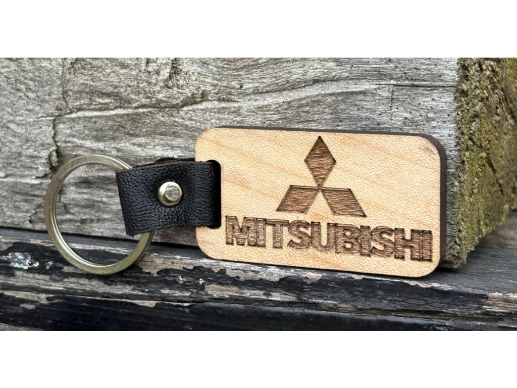 DŘEVĚNÁ KLÍČENKA - přívěšek 5,5 x 3 cm ZNAČKA MITSUBISHI