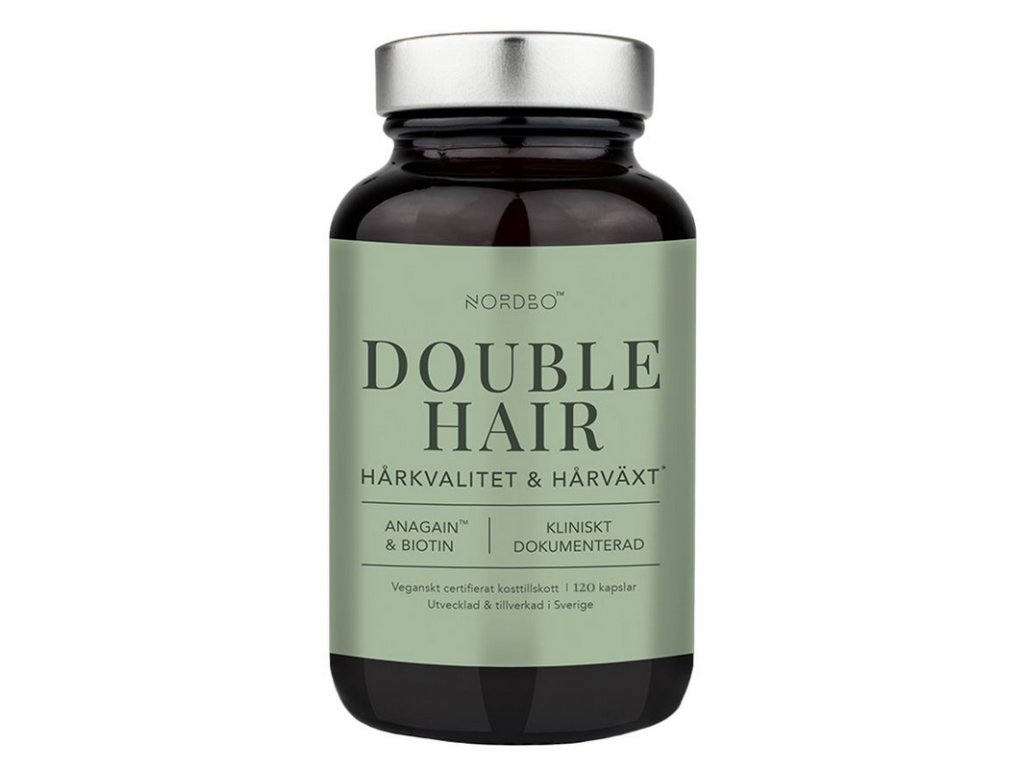 Nordbo Double Hair je velmi precizně zacílený doplněk stravy kombinují patentovaný extrakt AnaGainTM z BIO hrachových klíčků s vysokou dávkou biotinu. Vlastnosti těchto dvou složek jsou synergní a souvisejí se stimulací vlasových folikul, redukcí ztráty vlasů a jejich kondicí. AnaGainTM je speciální extrakt z hrachový klíčků, které jsou bohaté na složky aktivující buňky ve vlasových folikulech. Obnovují v nich mikrocirkulaci živin. Vlastnosti biotinu souvisejí s produkcí keratinu, který zvyšuje kvalitu vlasů. AnaGainTM byl testován v klinické studii s jedinci trpícími středně závažným vypadáváním. Po dvou měsících se snížila ztráta vlasů o 37 % a došlo k viditelnému zpevnění vlasových vláken.