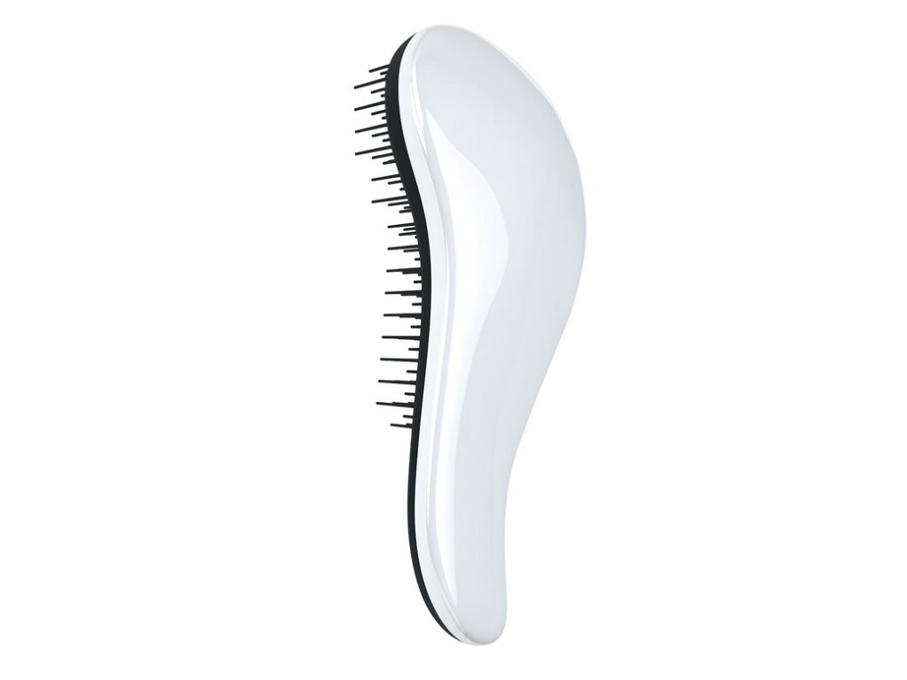 Elegantní stříbrný kartáč na vlasy pro snadné a šetrné rozčesávání všech typů vlasů, včetně jemných dětských. Speciální štětiny zabraňují lámání vlasů a zanechávají je lesklé a hladké. Ergonomické rukojeti padne pohodlně do ruky a usnadní každodenní péči o vlasy, včetně umělých nebo zacuchaných pramenů.