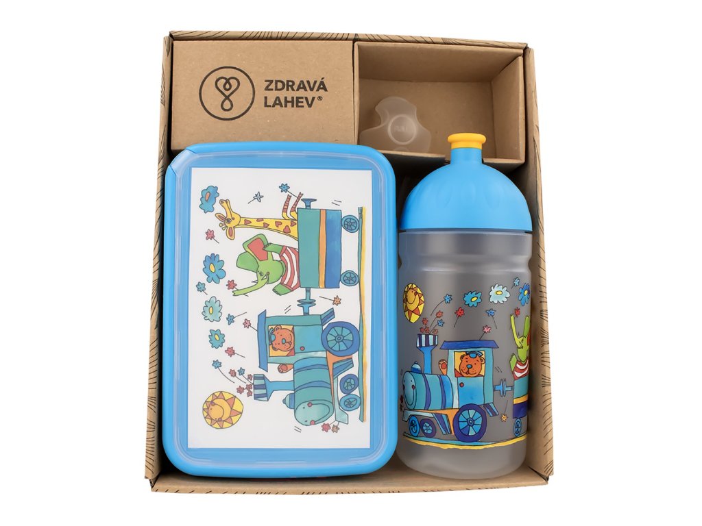 Nastupte do veselého vláčku a vydejte se vstříc dobrodružství! Tento hravý set s láhví a svačinovým boxem plným zvířátek je ideální parťák do školky, školy i na výlety. Bezpečný, lehký, zdravotně nezávadný – zkrátka praktický set, který udělá radost každému malému cestovateli!